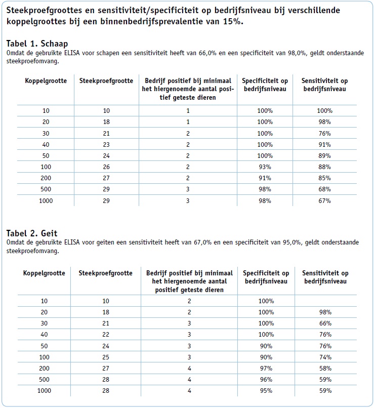 Om tot een goede uitspraak te komen zijn er richtlijnen voor het aantal in te zenden monsters. Deze zijn weergegeven in Tabel 1 en 2.
