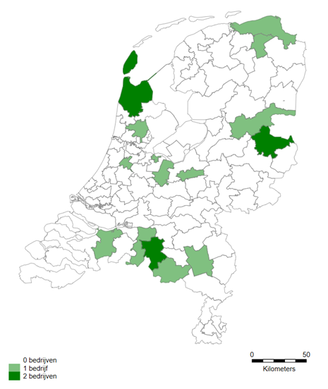 - Eén bedrijf door een besmet aangevoerd rund dat het IBR-virus verspreidde.