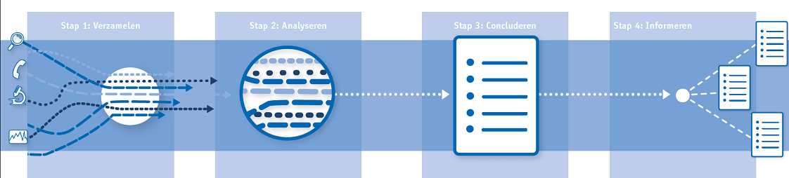 De diergezondheidsmonitoring biedt een breed vangnet voor het opvangen van zoveel mogelijk signalen over dierziekten in de veehouderij. De signalen komen bij GD binnen, vanuit de verschillende diersectoren én van veehouders en dierenartsen uit het hele land. GD verzamelt en analyseert alle informatie en meldingen die binnenkomen. Zo kan GD snel verbanden leggen en een beeld vormen van de ontstane situatie in het geval van bijvoorbeeld een uitbraak van een dierziekte in de veehouderij.