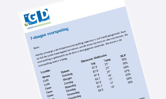 Ontvang iedere week gratis onze hittestress voorspelling direct in je mailbox. Dit geeft je de kans om vroegtijdig actie te ondernemen en hittestress te voorkomen.