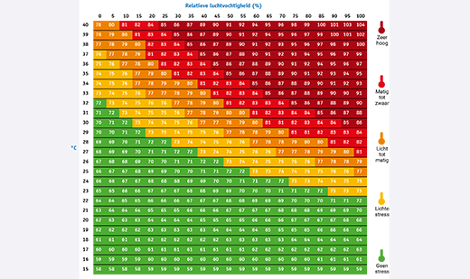 Download de pdf met THI-tabel, praktische adviezen én achtergrondinformatie om hittestress bij pluimvee te voorkomen. Print hem uit en hang hem op. Zo weet je direct wat te doen bij hitte.