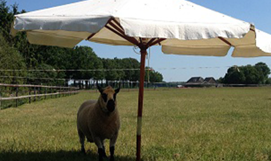 Het plaatsen van schaduwvoorzieningen in de wei kan overleg vergen met gemeente, verpachtende partijen, overige gebruikers van dezelfde weide etc. Door tijdig met hen in overleg te treden voorkomt u barrières op het moment dat er schaduw nodig is. Te denken valt aan permanente beplanting langs de perceelgrenzen of schuilstallen, maar ook tijdelijke maatregelen als het plaatsen van een tent of een platte kar. - Investeer indien nodig in extra ventilatiecapaciteit en dakisolatie en/of koeling van het dak van de stal
