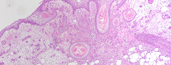 Op een bedrijf was een verhoogde uitval bij de hanen. De hanen blijken dikke lellen te hebben waar veel ontstekingexsudaat in zit.